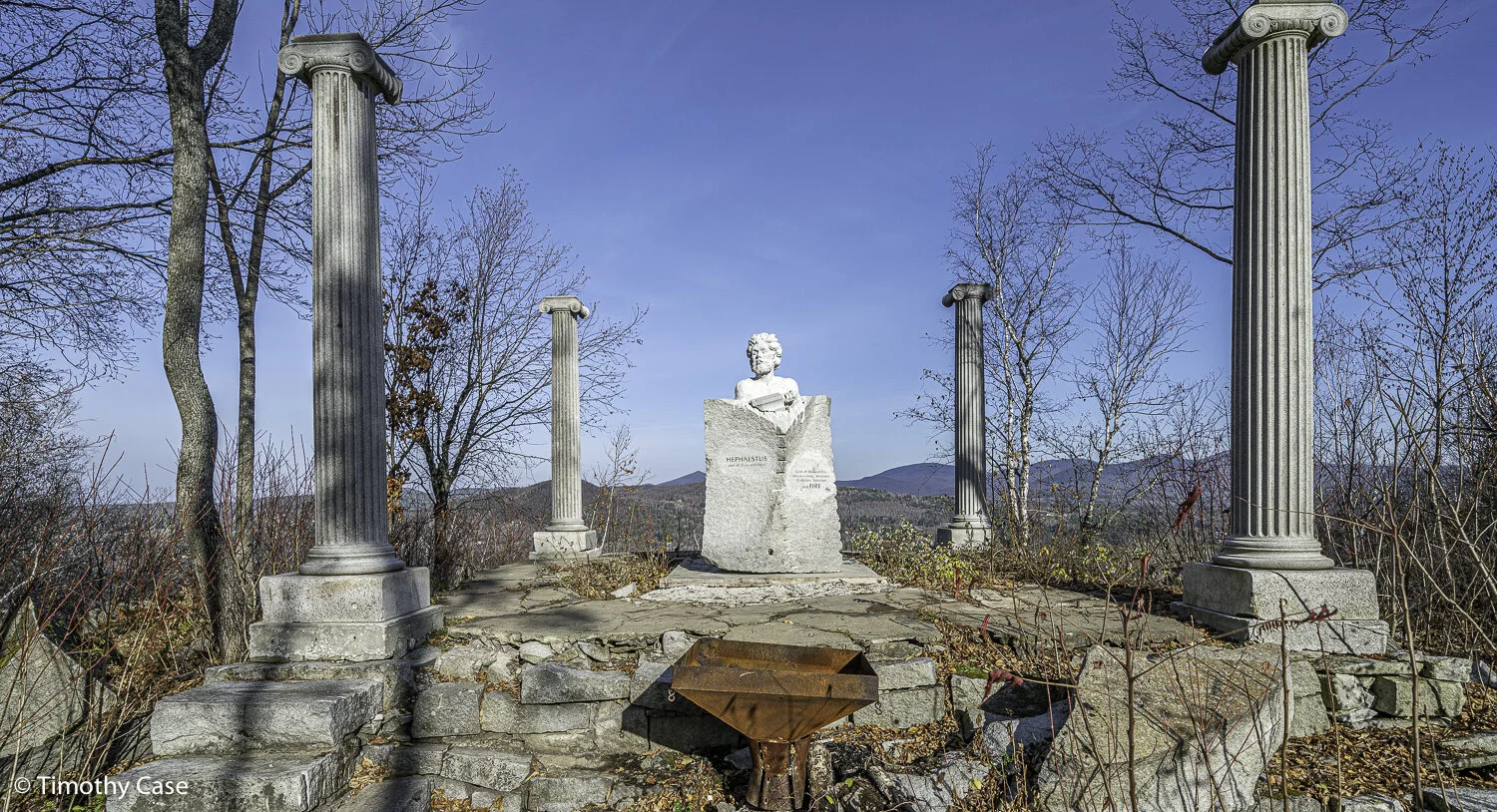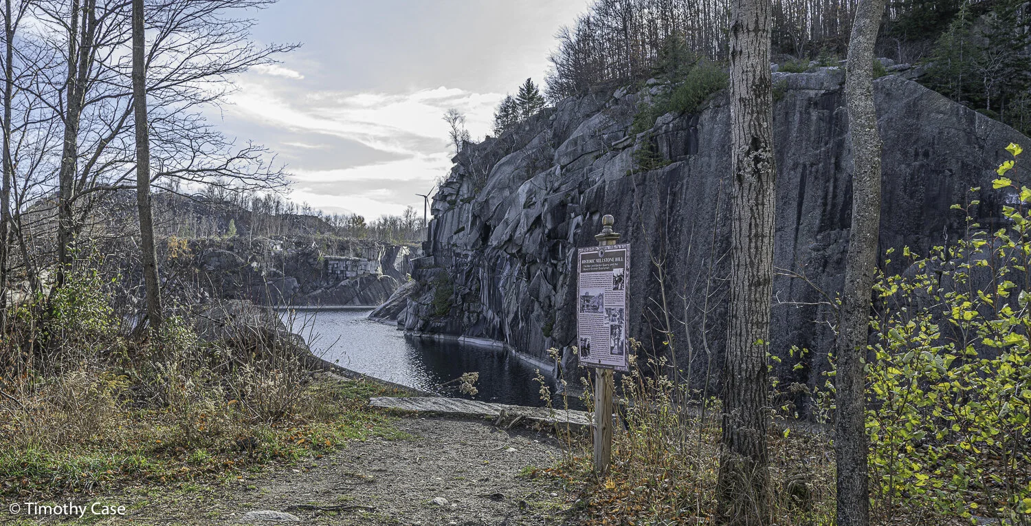 As a photographer, I’ve visited the quarries near Barre in Graniteville many times over the past 10 years, but this is the first time that Barbara accompanied me. We hiked the short trail into the Wetmore & Morse quarry, which is abandoned and quite large as it extends in an arc of approximately ⅔ of a mile. The site includes signage with several historical photos, industrial detritus and recent stones carvings.