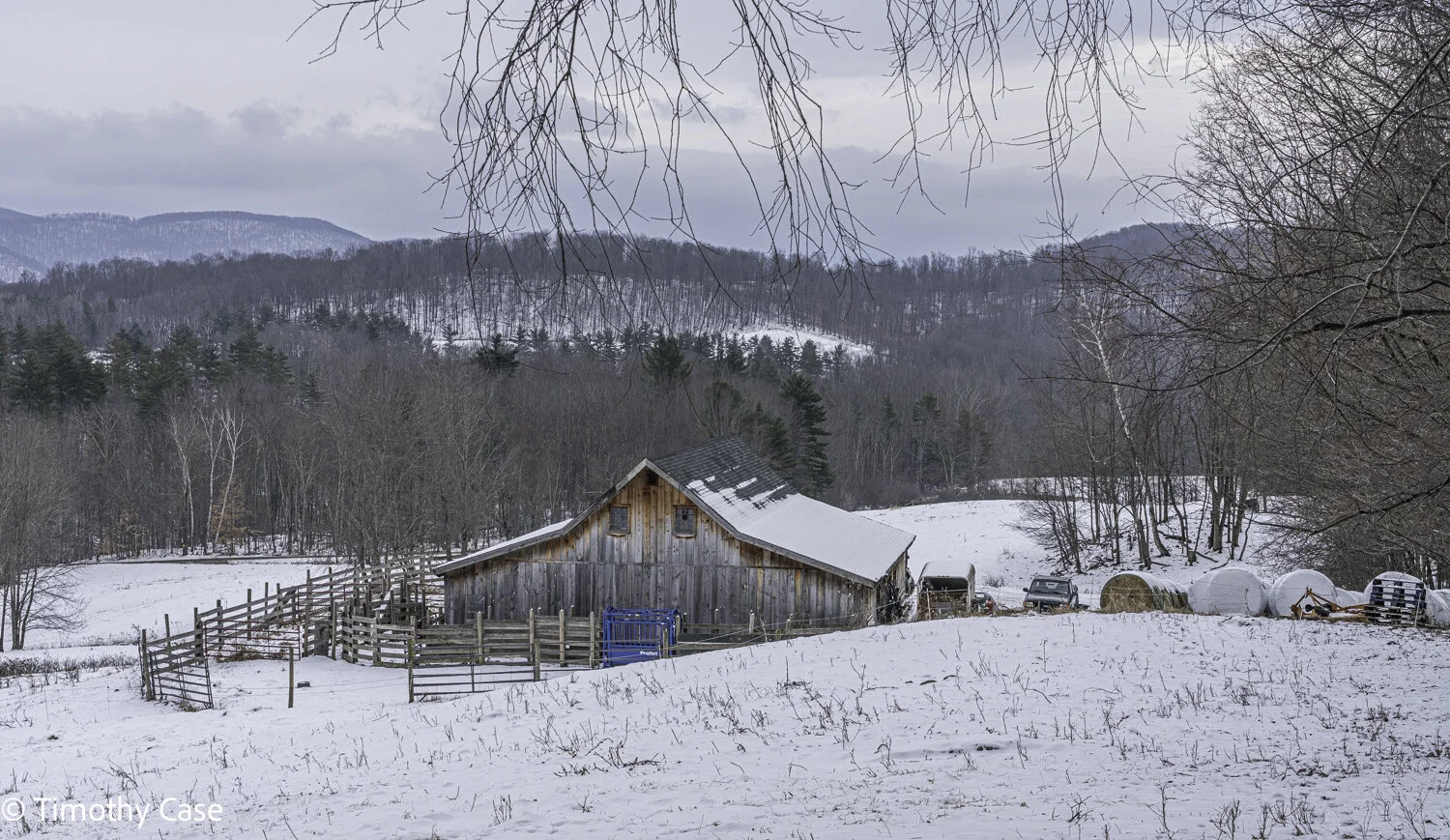 Barn and mountain setting adjacent to the trail to Hatstack Mountain. 01-15-2021