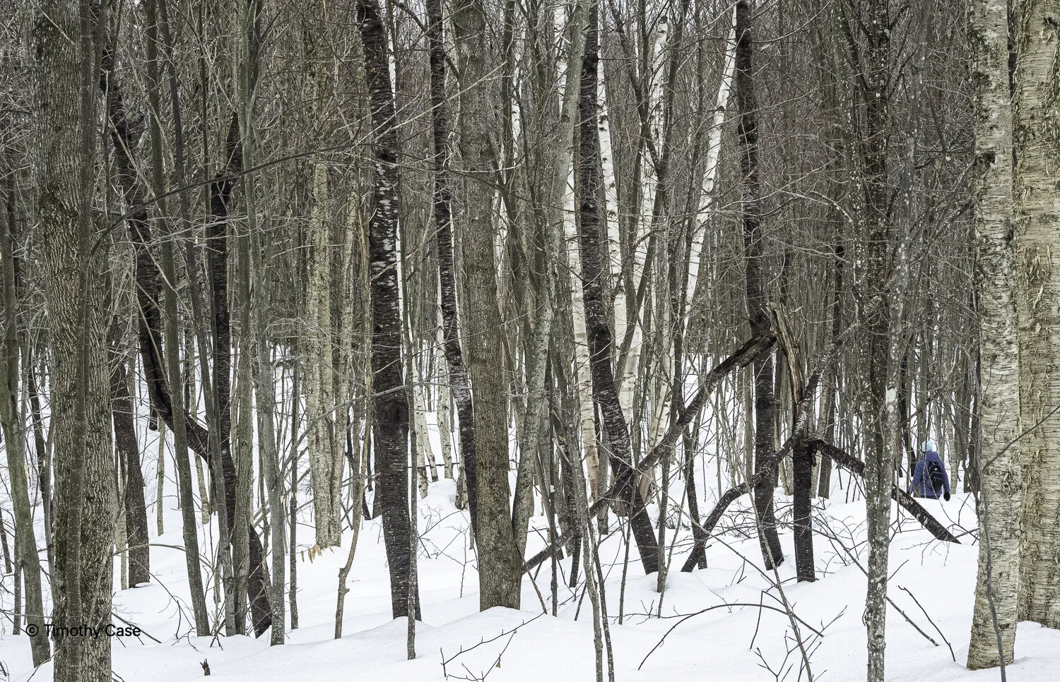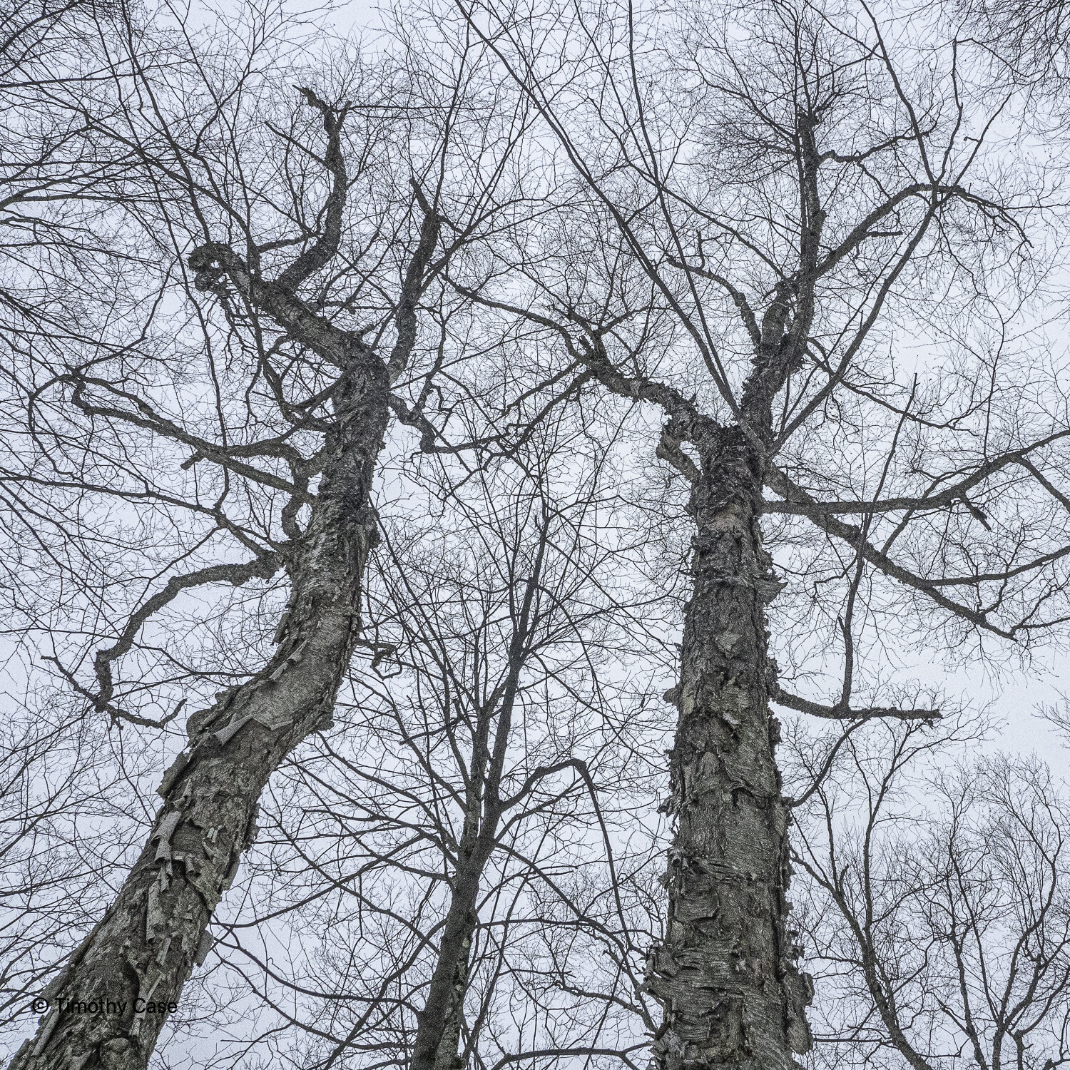 The black trunks are Black Birch. There are also Paper Birch, Yellow Birch, maybe one Grey Birch, and a few American Beech.